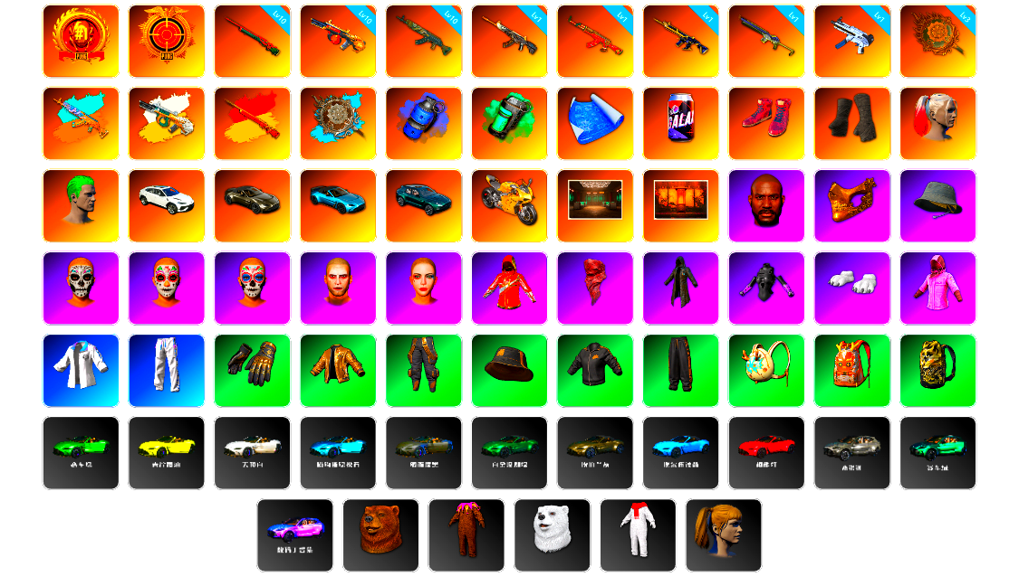 | 载具皮肤 | 阿斯顿马丁 兰博基尼SUV 阿斯顿马丁跑车 |